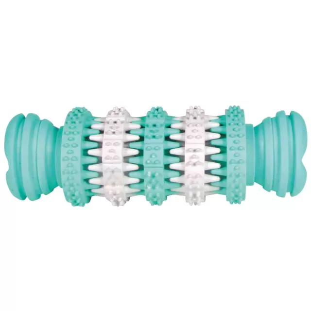 Trixie Denta Fun igračka za pse u obliku valjka dužine 11cm napravljena je od prirodne gume i ima ukus mentola, a vaš pas će je obožavati, bilo da mu je bacate ili da leži, glođe je i tako masira desni.