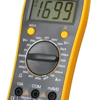 Digitalni multimetar sa ručnom promenom mernog opsega, vrlo jednostavan za upotrebu.