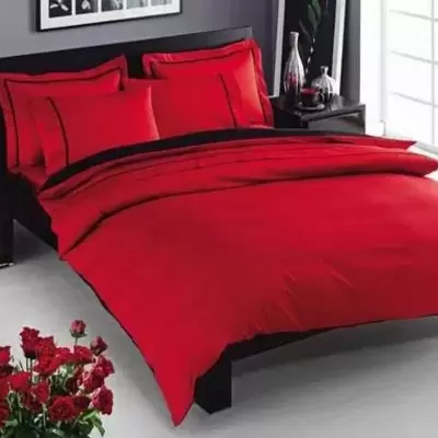 Dupla posteljina, izrađena od saten pamuka. Komplet sadrži jorgansku navlaku, čaršaf i četiri jastučnice.