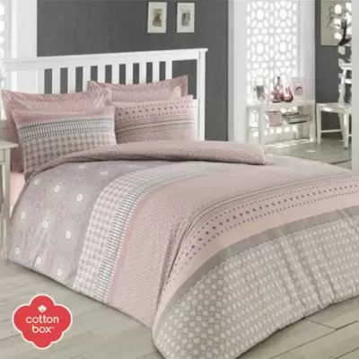 Dupla pamučna posteljina, namenjena za bračni krevet. Komplet sadrži jorgansku navlaku, čaršav i dve jastučnice.