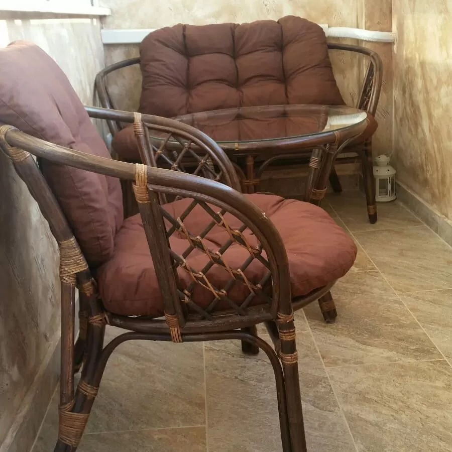 Komplet jastuka za bambus ratan Bahama baštensku garnituru čine 2 jastuka za fotelje i jedan jastuk za dvosed, debljine 15-20cm. Navlaka je od pamuka, a punjenje od mlevenog sunđera.