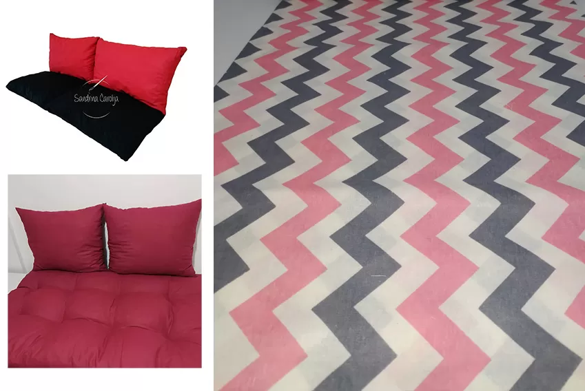 Komplet čine 3 jastuka (1 sedalni i 2 jastuka za naslon)