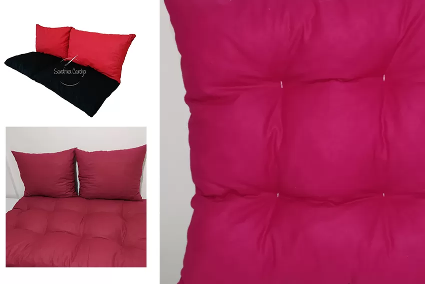 Komplet čine 3 jastuka (1 sedalni i 2 jastuka za naslon)
