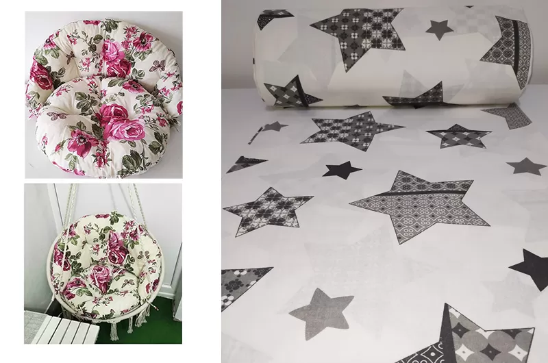 Jastuk iz 2 dela za Makrame ljuljašku. Dimenzije su 130 x 50 cm. Napravljeni su od pamučnog posteljskog platna, a punjeni mlevenim sunđerom. Dolaze sa vrpcama za fiksiranje.