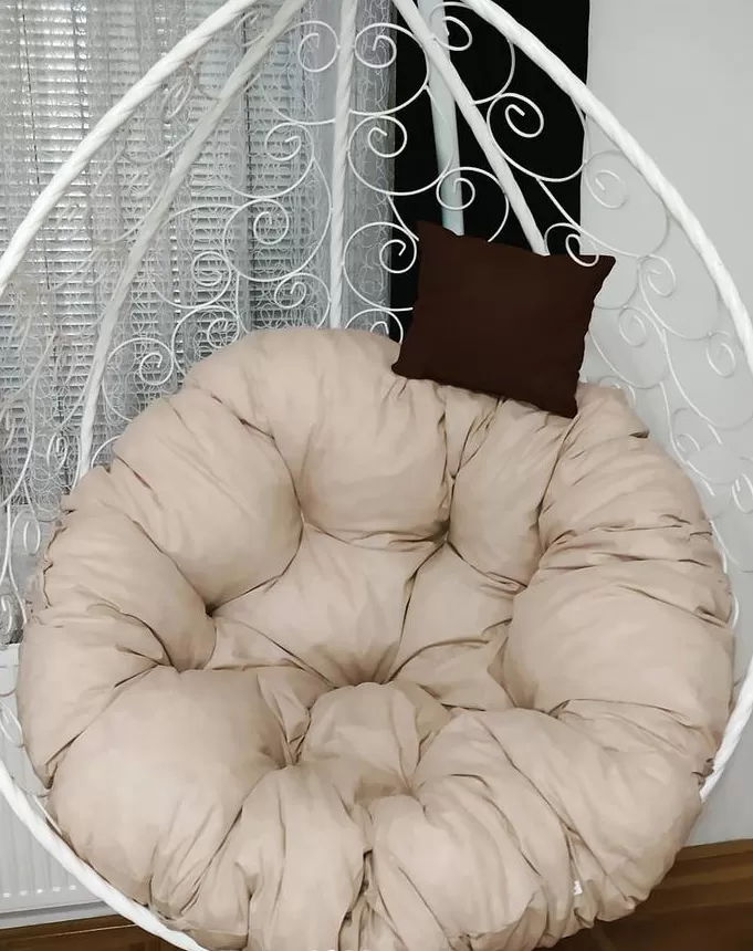 Jastuk za baštensku ljuljašku jaje. Prečnik jastuka je 140 cm. Napravljen je od pamučnog posteljnog platna, a punjenje je mleveni sunđer. Udoban je i kvalitetno napravljen.