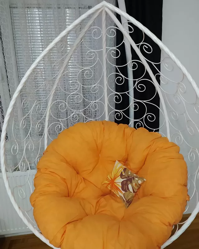 Jastuk za baštensku ljuljašku jaje. Prečnik jastuka je 140 cm. Napravljen je od pamučnog posteljnog platna, a punjenje je mleveni sunđer. Udoban je i kvalitetno napravljen.