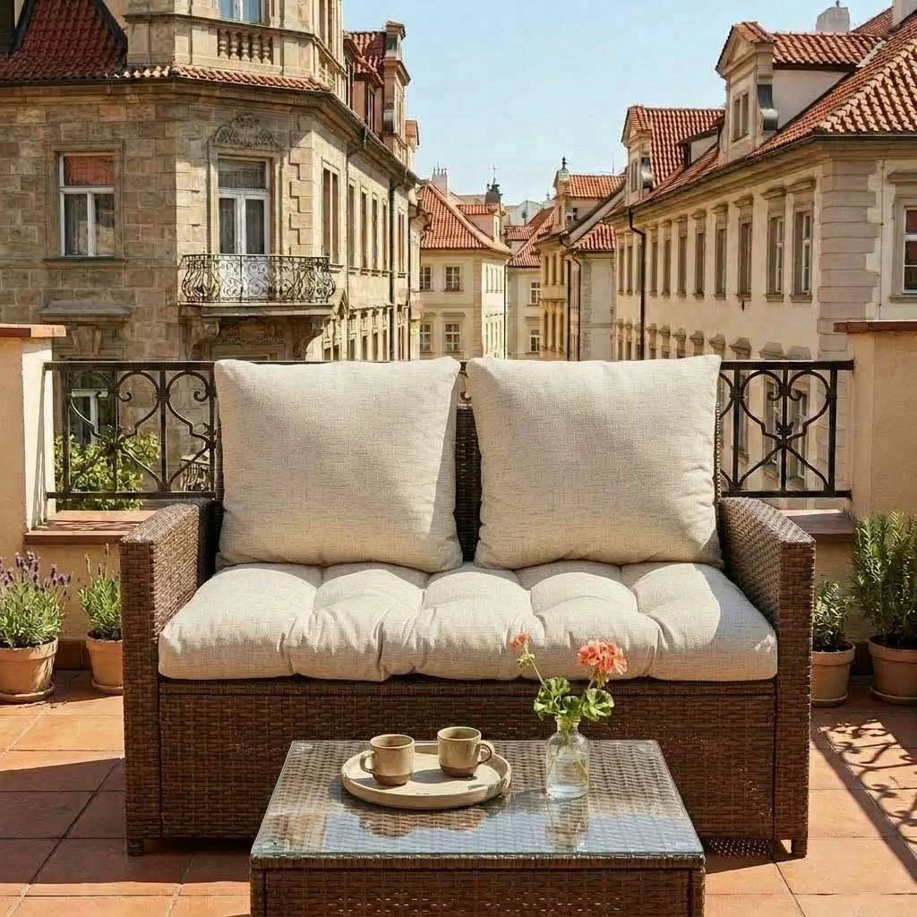 Jastuci koji su i ukras i investicija u Vaš odmor. Pretvorite svoj baštenski dvosed u mesto koje mami na opuštanje! Komplet jastuka, sedalni i dva za naslon, dimenzija 100x50x50cm, debljine 15-20cm, od glatkog pamuka.