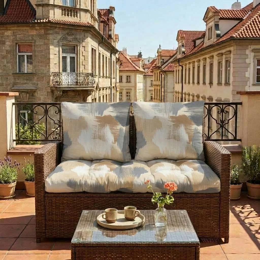 Jastuci koji su i ukras i investicija u Vaš odmor. Pretvorite svoj baštenski dvosed u mesto koje mami na opuštanje! Komplet jastuka, sedalni i dva za naslon, dimenzija 100x50x50cm, debljine 15-20cm, od glatkog pamuka.
