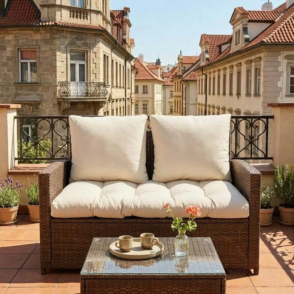 Jastuci koji su i ukras i investicija u Vaš odmor. Pretvorite svoj baštenski dvosed u mesto koje mami na opuštanje! Komplet jastuka, sedalni i dva za naslon, dimenzija 100x50x50cm, debljine 15-20cm, od glatkog pamuka.