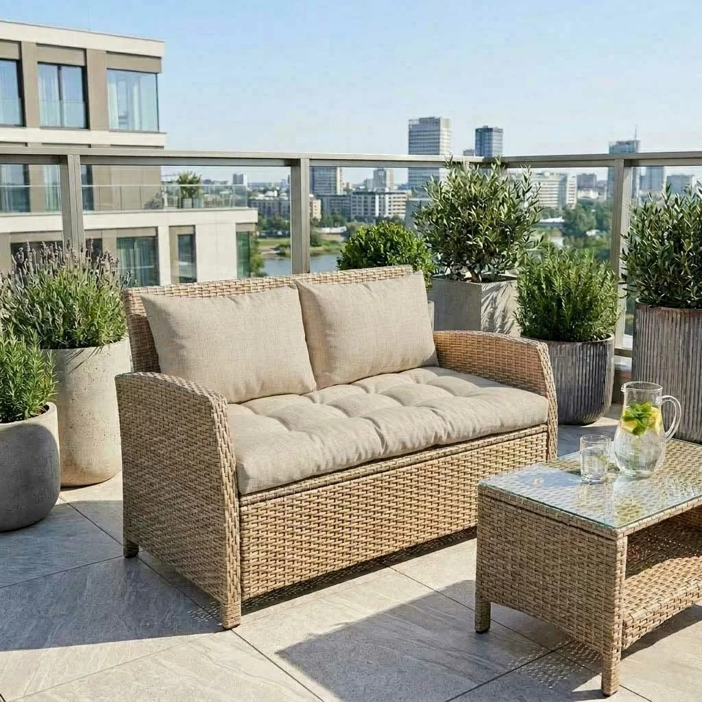 Pretvorite svoj baštenski dvosed u mesto koje mami na opuštanje! Komplet jastuka, sedalni i dva za naslon, dimenzija 130x50x50cm, debljine 15-20cm, od glatkog pamuka.