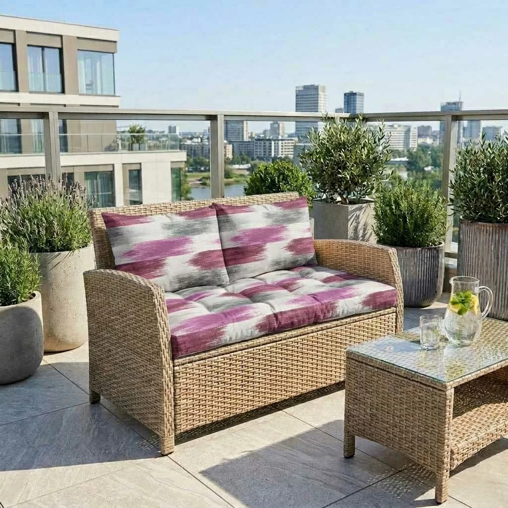 Pretvorite svoj baštenski dvosed u mesto koje mami na opuštanje! Komplet jastuka, sedalni i dva za naslon, dimenzija 130x50x50cm, debljine 15-20cm, od glatkog pamuka.