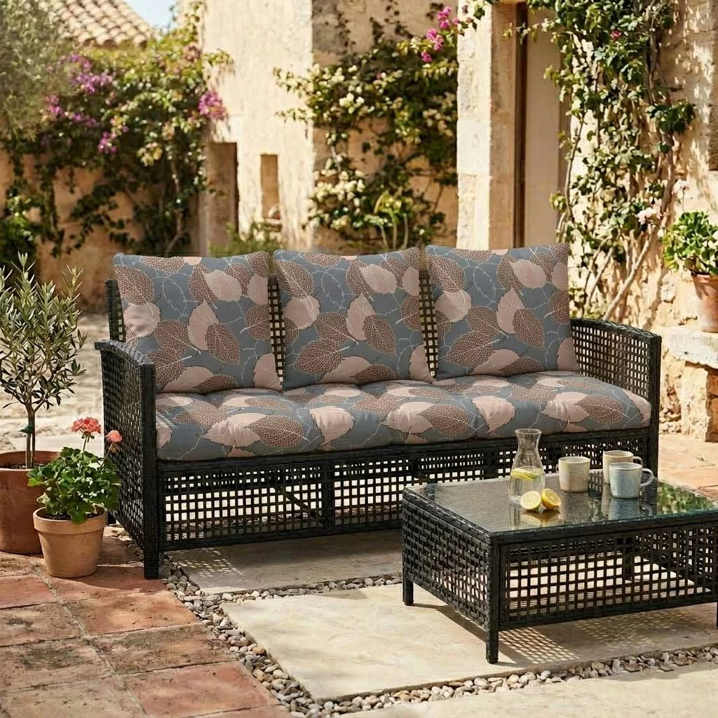 Vaš baštenski trosed biće savršen letnji kutak za odmor sa porodicom ili prijateljima uz komplet mekih jastuka, sedalni i tri za naslon, dimenzija 160x50x50cm, debljine 15-20cm, od glatkog pamuka.