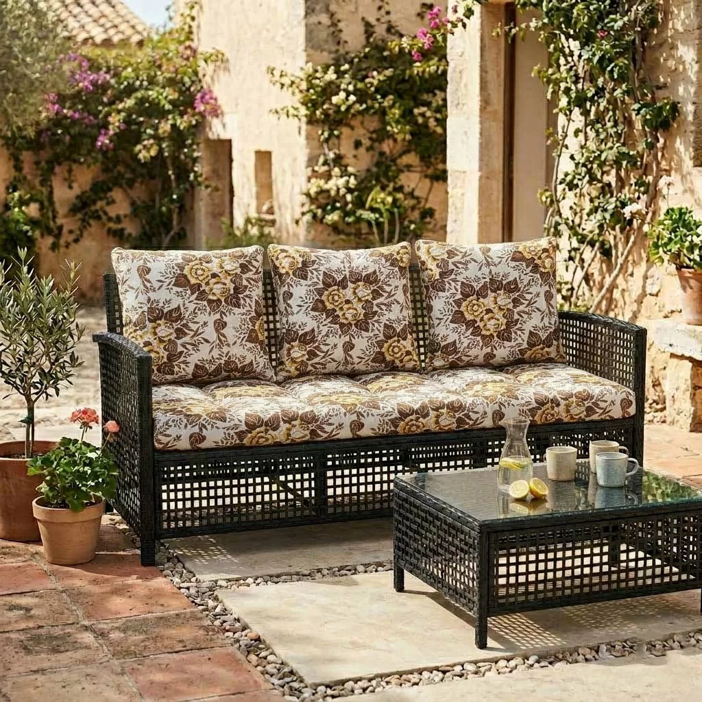 Vaš baštenski trosed biće savršen letnji kutak za odmor sa porodicom ili prijateljima uz komplet mekih jastuka, sedalni i tri za naslon, dimenzija 160x50x50cm, debljine 15-20cm, od glatkog pamuka.