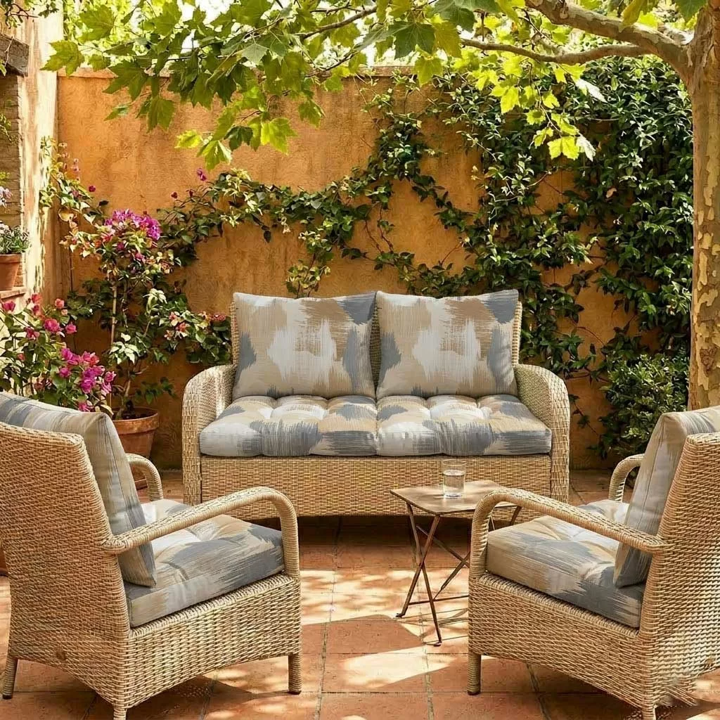 Komplet jastuka za baštensku garnituru, dvosed i dve fotelje, koji će učiniti da Vaš letnji kutak bude svima omiljeno mesto. Bogato punjeni (15-20cm), sa pamučnim navlakama koje garantuju mekoću i svežinu.