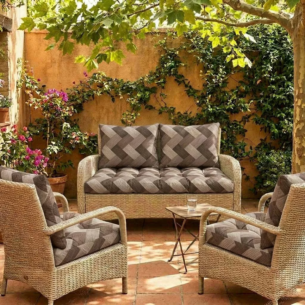 Komplet jastuka za baštensku garnituru, dvosed i dve fotelje, koji će učiniti da Vaš letnji kutak bude svima omiljeno mesto. Bogato punjeni (15-20cm), sa pamučnim navlakama koje garantuju mekoću i svežinu.