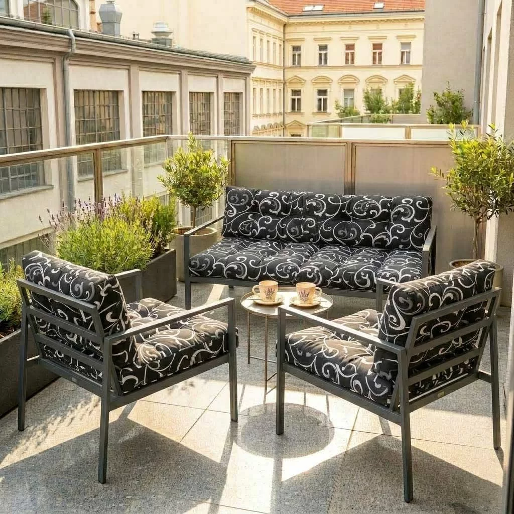 Jastuci Za Baštensku Garnituru Sa Niskim Naslonima - Dvosed i Dve Fotelje BLACK ORNAMENT