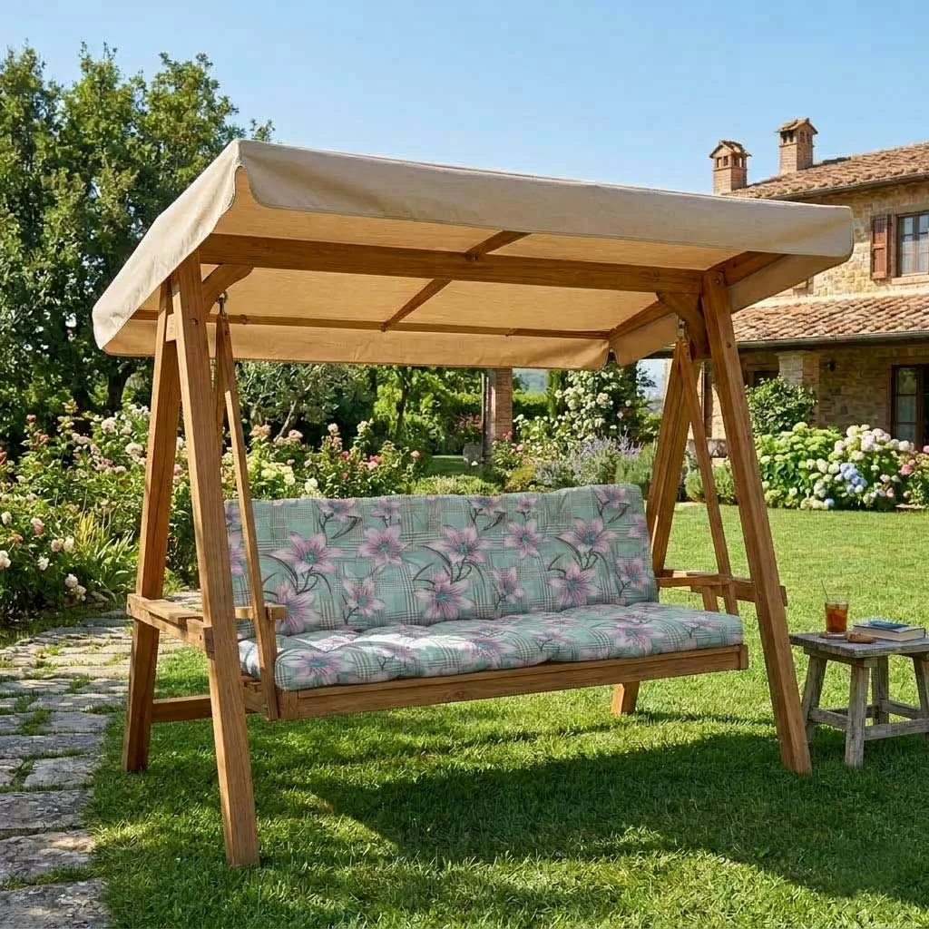 Jastuci za veliku baštensku ljuljašku od glatkog pamučnog platna, debljine 15-20cm, dimenzija 180x65x65cm, učiniće da svaki trenutak odmora bude čisto zadovoljstvo.