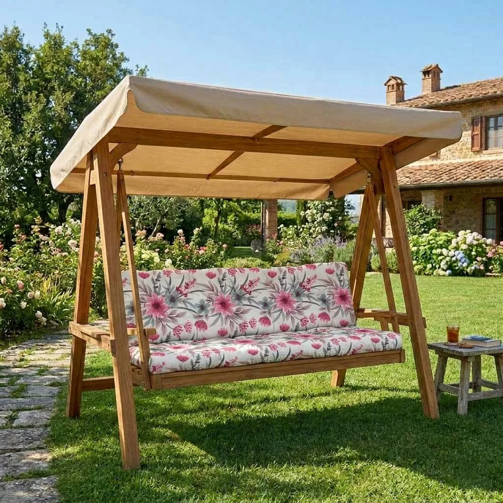 Jastuci za veliku baštensku ljuljašku od glatkog pamučnog platna, debljine 15-20cm, dimenzija 180x65x65cm, učiniće da svaki trenutak odmora bude čisto zadovoljstvo.