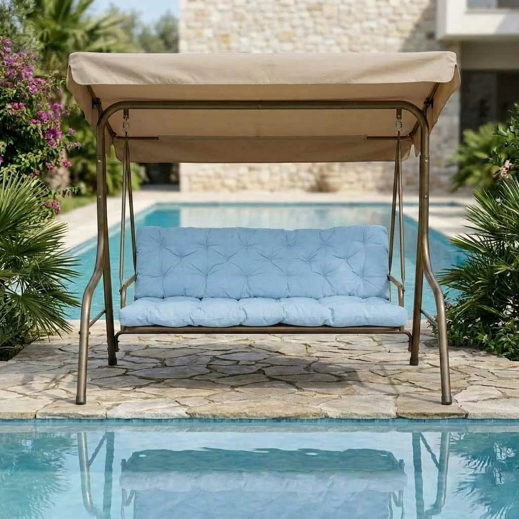 Jastuci za veliku baštensku ljuljašku od glatkog pamučnog platna, debljine 15-20cm, dimenzija 180x65x65cm, učiniće da svaki trenutak odmora bude čisto zadovoljstvo.