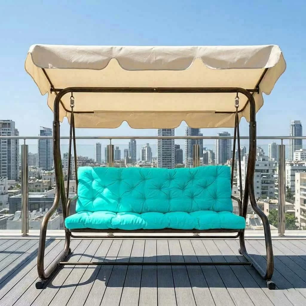 Jastuci za veliku baštensku ljuljašku od glatkog pamučnog platna, debljine 15-20cm, dimenzija 180x65x65cm, učiniće da svaki trenutak odmora bude čisto zadovoljstvo.