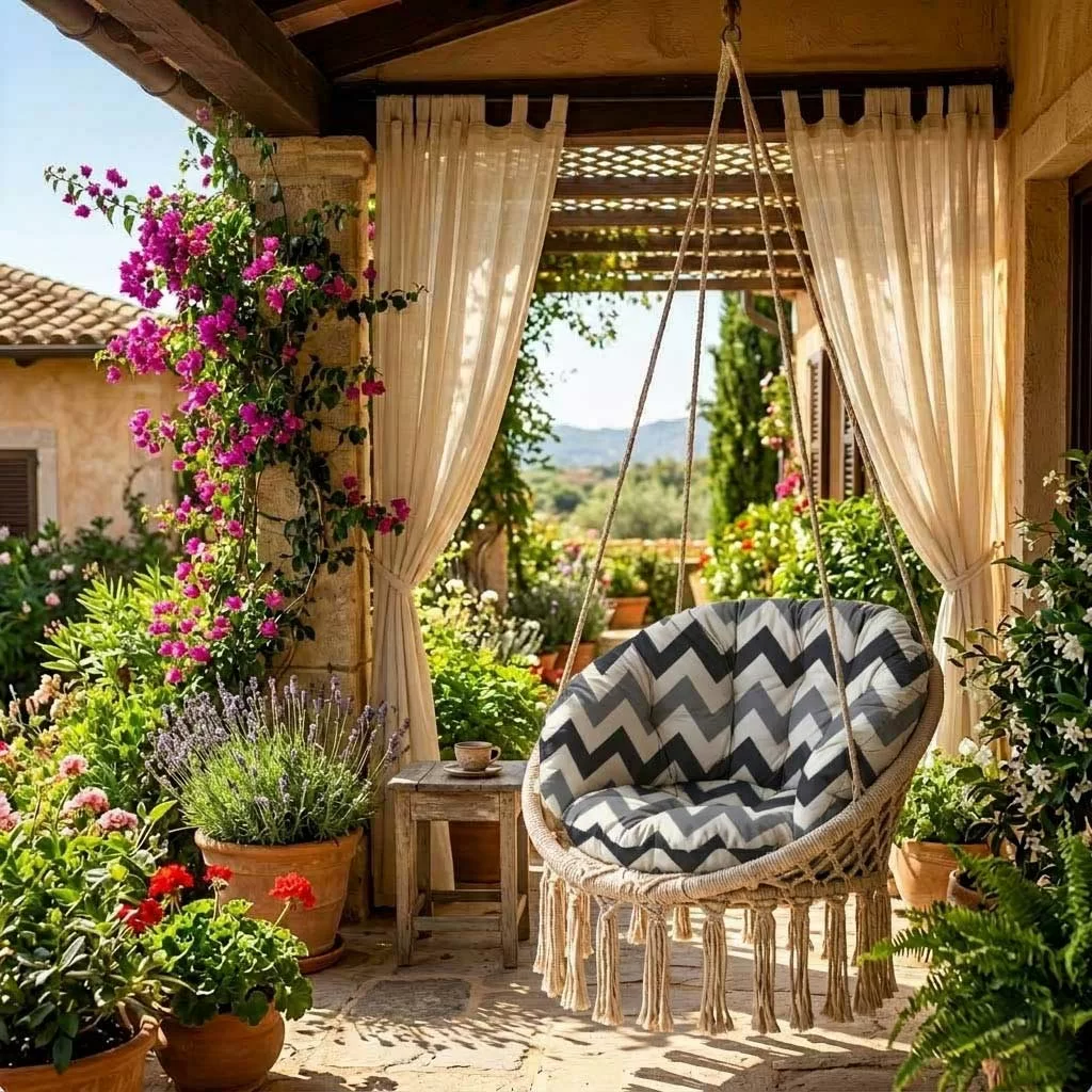 Jastuci koji će obogatiti Vaš prostor za odmor svojim bojama i mekoćom i Vašu makrame ljuljašku učiniti još omiljenijim mestom. Izrađeni su od prijatnog pamučnog platna i mlevenog sunđera, imaju uzice za vezivanje.