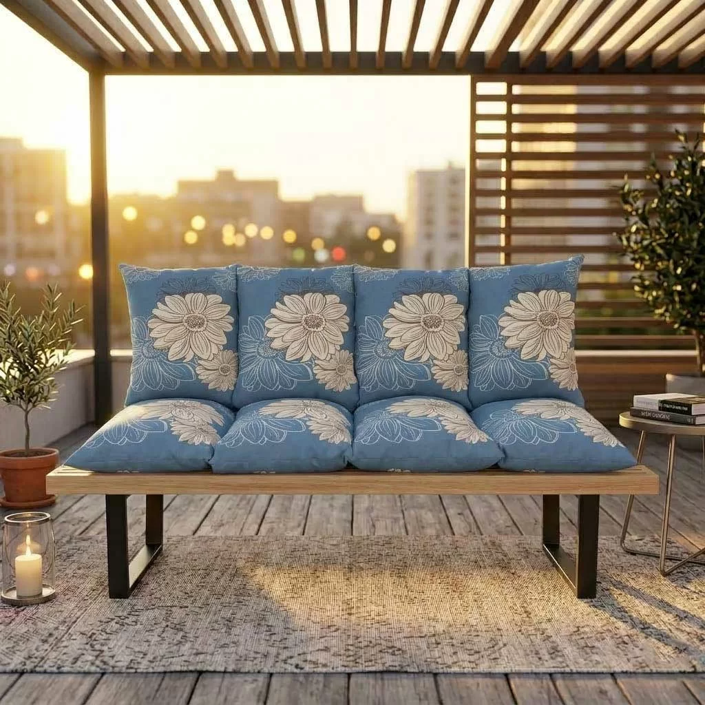 Komplet jastuka koji će obogatiti Vaš prostor za odmor svojim bojama i mekoćom i Vaš baštenski dvosed učiniti svima omiljenim mestom. Dimenzija 120x50x50cm, debljine 15-20cm, od prijatnog pamučnog platna, ima uzice za vezivanje.