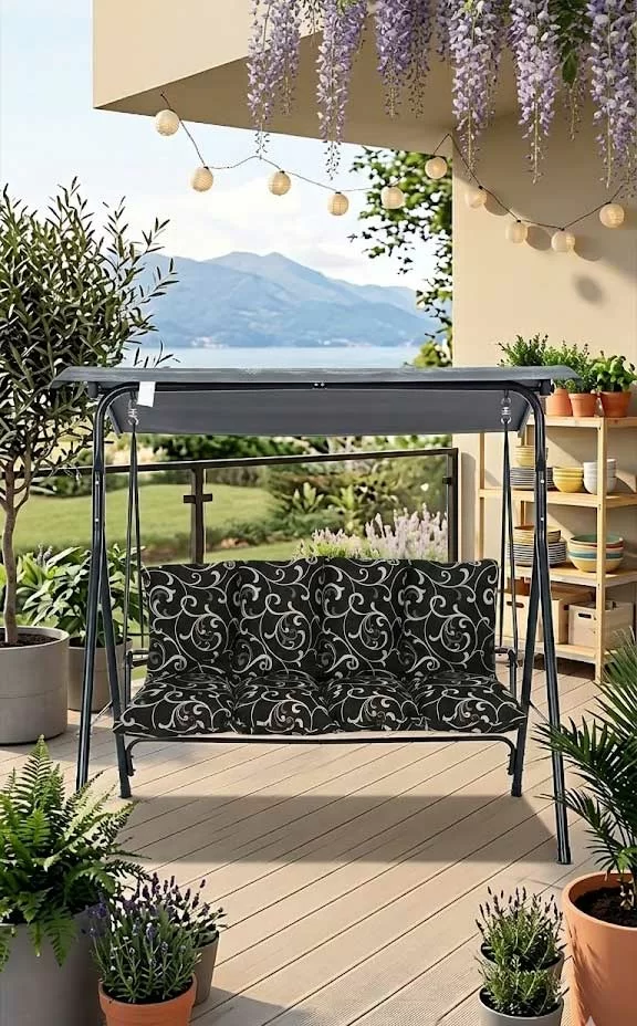 Jastuk Za Baštensku Ljuljašku 180x65x65cm Black Ornament