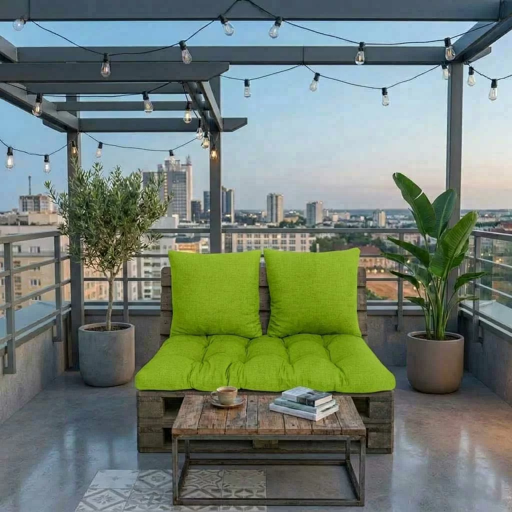 Jastuci koji nisu samo ukras, već su investicija u Vaš odmor. Pretvorite obične drvene palete u udobnu garnituru koja mami na opuštanje! Komplet jastuka, sedalni i dva za naslon, debljine 15-20cm, od glatkog pamuka.