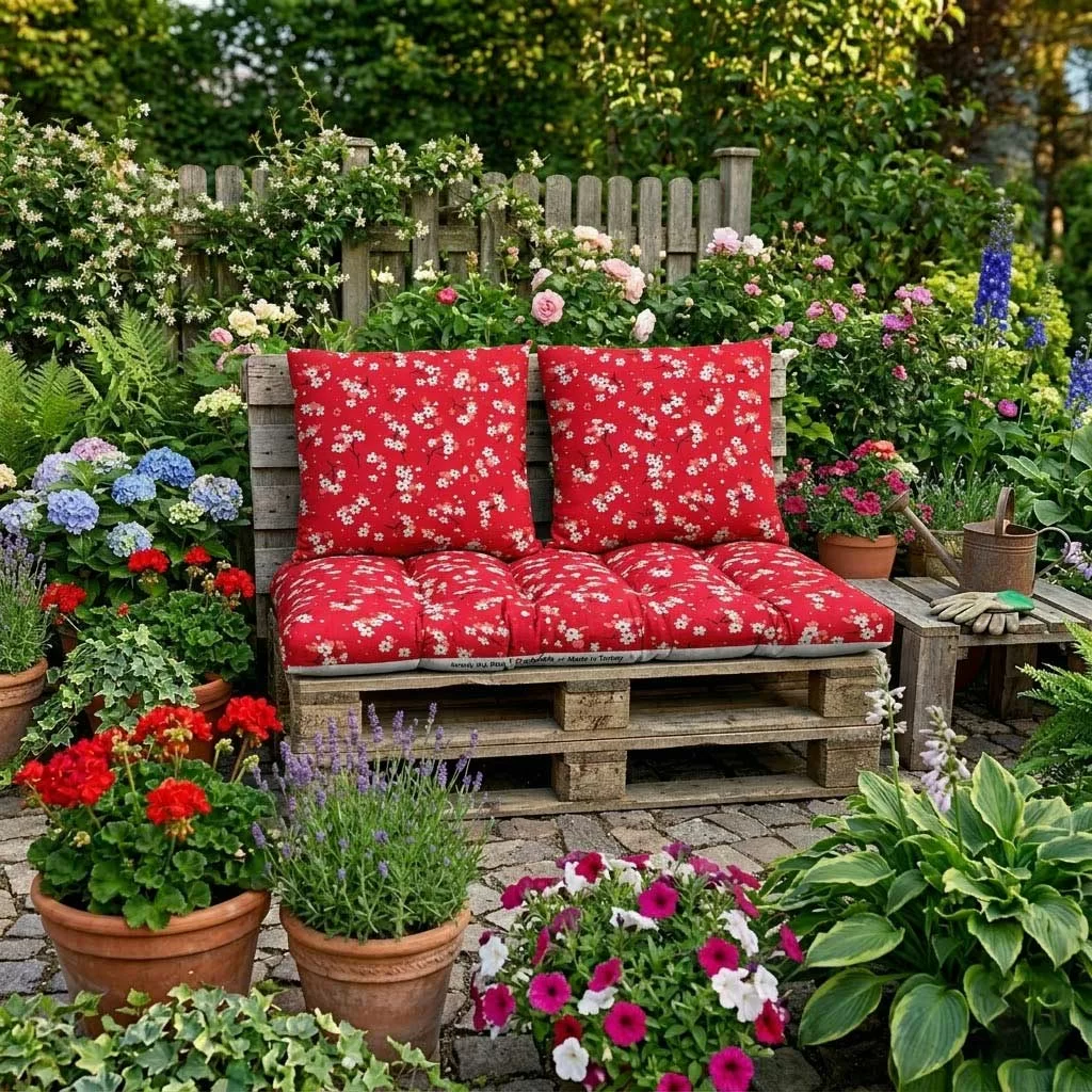 Komplet jastuka za garniture od paleta U pakovanju: 1 sedalni deo i 2 jastuka za naslon Dezen/boja: RED SPRING Dimenzije sedalnog dela: 120x80 cm Dimenzije jednog jastuka za naslon: 60x40 cm Debljina punjenja: 15-20 cm Materijal navlake: pamuk (posteljno pamučno platno) Materijal punjenja: mleveni sunđer Sedalni deo je štepan Sedalni deo ima uzice za vezivanje za konstrukciju garniture Može se prati, ručno