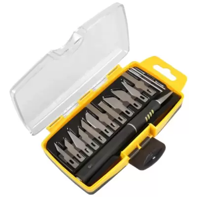 Karakteristike - Tip alata: Set HOBI noževa Fizičke karakteristike - Boja: Crno-žuta Pakovanje: 13 komada,2 igle Ostalo: Ergonomska ručka,Magnetski...