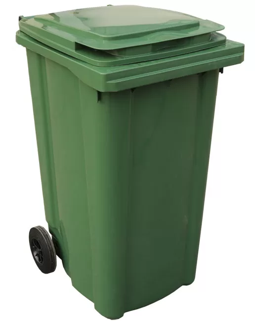 Velika kanta za otpatke sa poklopcem, zapremine 240 litara. Napravljena je od kvalitetne plastike koja je otporna na visoke i niske temperature, hemikalije i UV zračenje. Ima točkove prečnika 200mm radi lakšeg pomeranja.