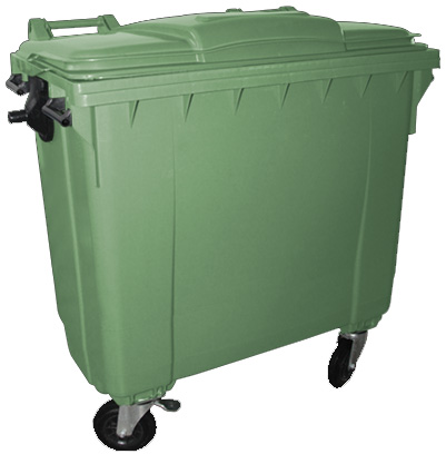 Kontejner za otpatke sa poklopcem, zapremine 1100 lit. Izrađen je od kvalitetne plastike, otporne na visoke i niske temperature i UV zračenje. Ima točkiće radi lakšeg pomeranja.