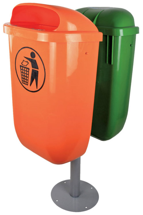 Komplet dve stubne kante izradjene od kvalitetnog polietilena visoke gustine otpornog na vremenske uticaje i metalnog nerdjajućeg stuba na koji se mogu kačiti jedna ili dve kante