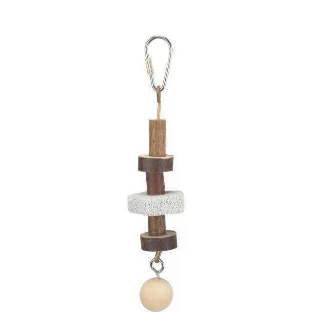 Trixie igračka 16cm za kanarince, papagaje i druge ptice je napravljena od drvenih perli i jednog lava kamena koji će vaš ljubimac voleti da kljuca i na taj način će održavati zdravim svoj kljun.