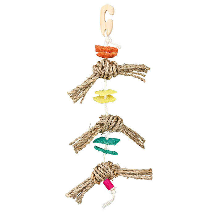 Igračka za ptice Trixie napravljena je od drveta i kanapa. Predviđena je da visi u kavezu i bude zabava za Vašeg ljubimca. Dužina joj je 30cm.