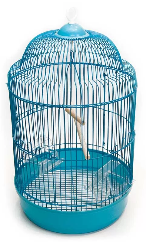 Kavez za papagaja, kanarinca, zebu, tigricu, rozenkolisa... Dimenzije su 33x33x57cm, napravljen je od plastificirane žice i opremljen ljuljaškom, prečkom, pojilicom i hranilicom.
