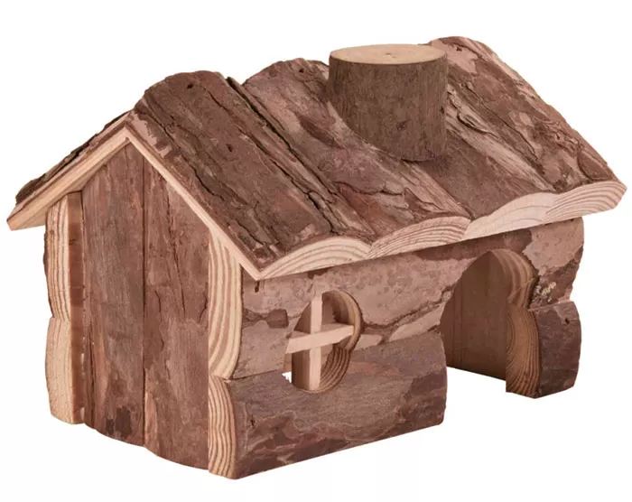 Kućica, poput brvnare, za vašeg malog ljubimca glodara (hrčak ili miš, na primer), dimenzija 15x12x11cm, je mesto u kom će moći da se sakrije, da skladišti, da se penje, provlači...