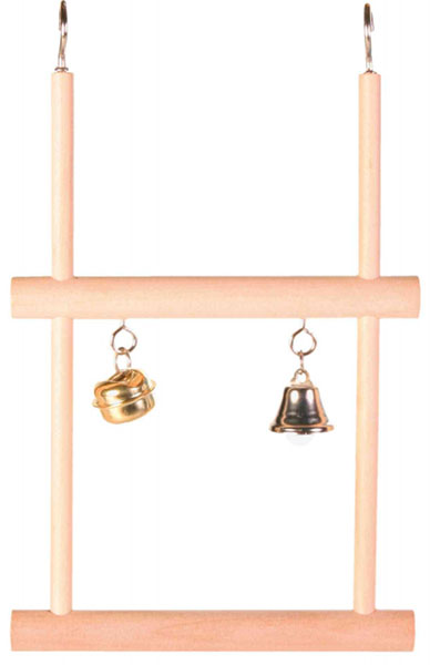 Drvena ljuljaška za kavez, dimenzija 20x12cm, sa dva zvonca i dve prečke, je nešto što će sigurno obradovati vašeg ljubimca.
