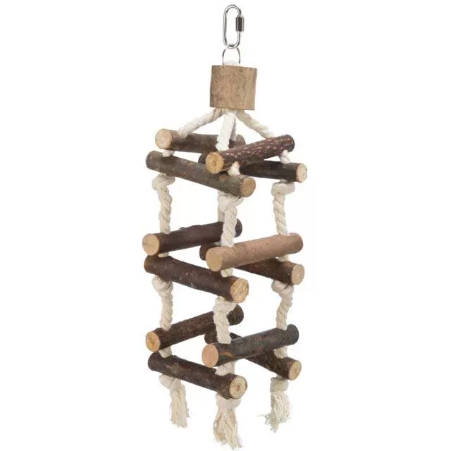 Trixie igračka za ptice u kavezu Viseća kula duga je 34cm i napravljena je od drvenih prečkica i pamučnog kanapa.