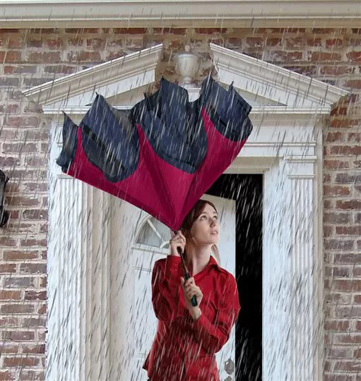 Kišobran sa inovativnom verso tehnologijom koja se zatvara prema spolja i omogućava da se ne pokvasite kišnicom koja kaplje sa kišobrana.
