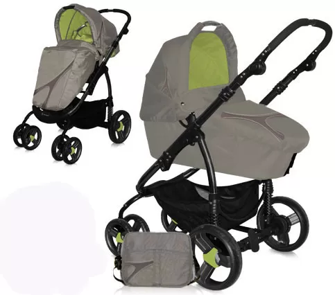 U pakovanju se nalazi: ram kolica, tvrda korpa za novorođenče, sportsko sedište, 2 zimske navlake, torba za mamu