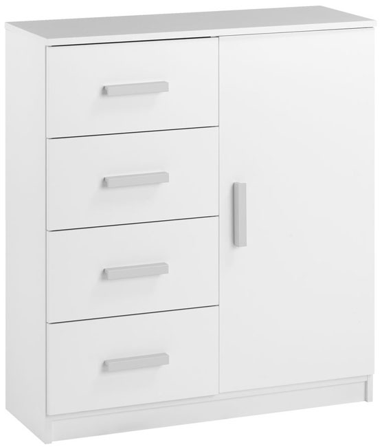 Praktična komoda sa četiri fioke i jednim vratima, izrađena od iverice. Dimenzije ove komode su 79x88x35cm.
