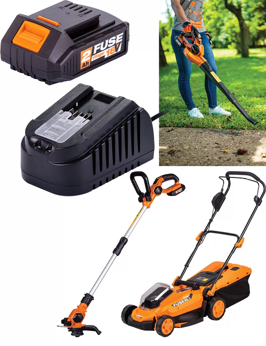Komplet Baštenskog Aku Alata Villager Fuse Garden 1 - Kosačica, Duvač Lišća i Trimer za Travu Sa Baterijom i Punjačem