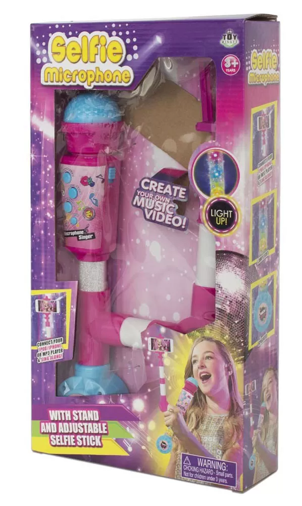 Set sadrži: mikrofon sa zvučnim i svetlosnim efektima, držač za mobilni