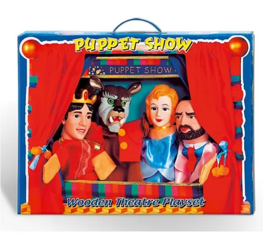 Set od 4 ginjol lutke iz bajke Lepotica i Zver sa drvenim mini pozorištem.