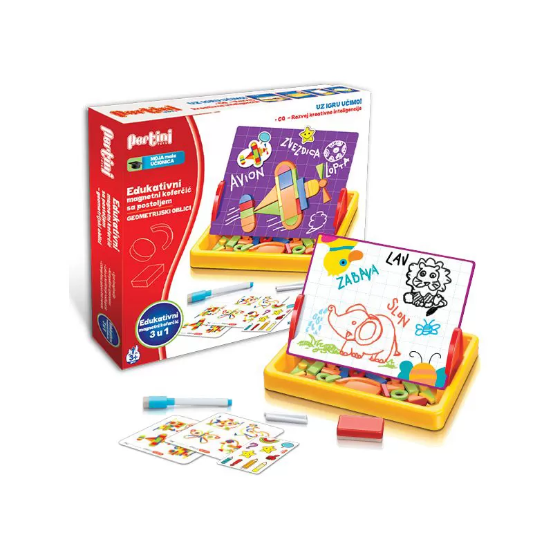 Edukativni magnetni koferčić sa postoljem geometrijski oblici