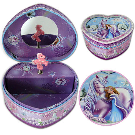 Na unutrašnjoj strani poklopca se nalazi ogledalce, a u samoj kutiji figura konjića koji se okreće dok muzika svira