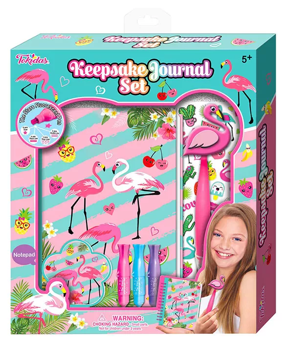 Spomenar-dnevnik Flamingo sa fluo olovkama pečatima Zvezdice idealan je poklon set za devojčice. Uzrast: 5g+
