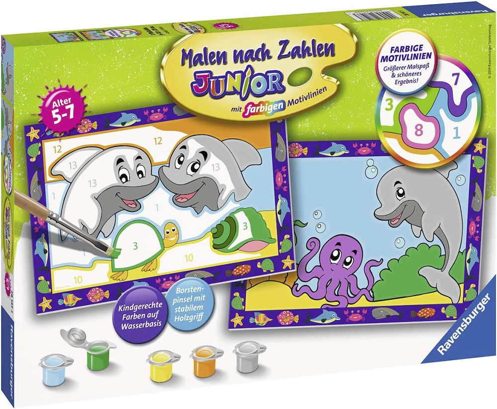 Ravensburger Bojanka po brojevima + akrilne boje Delfini 28147