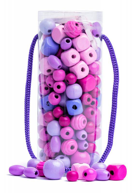 U pakovanju: perle različitih oblika i boja, pertle za nizanje
